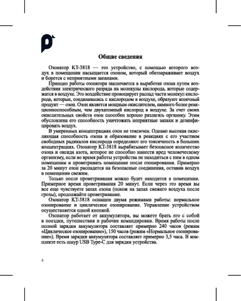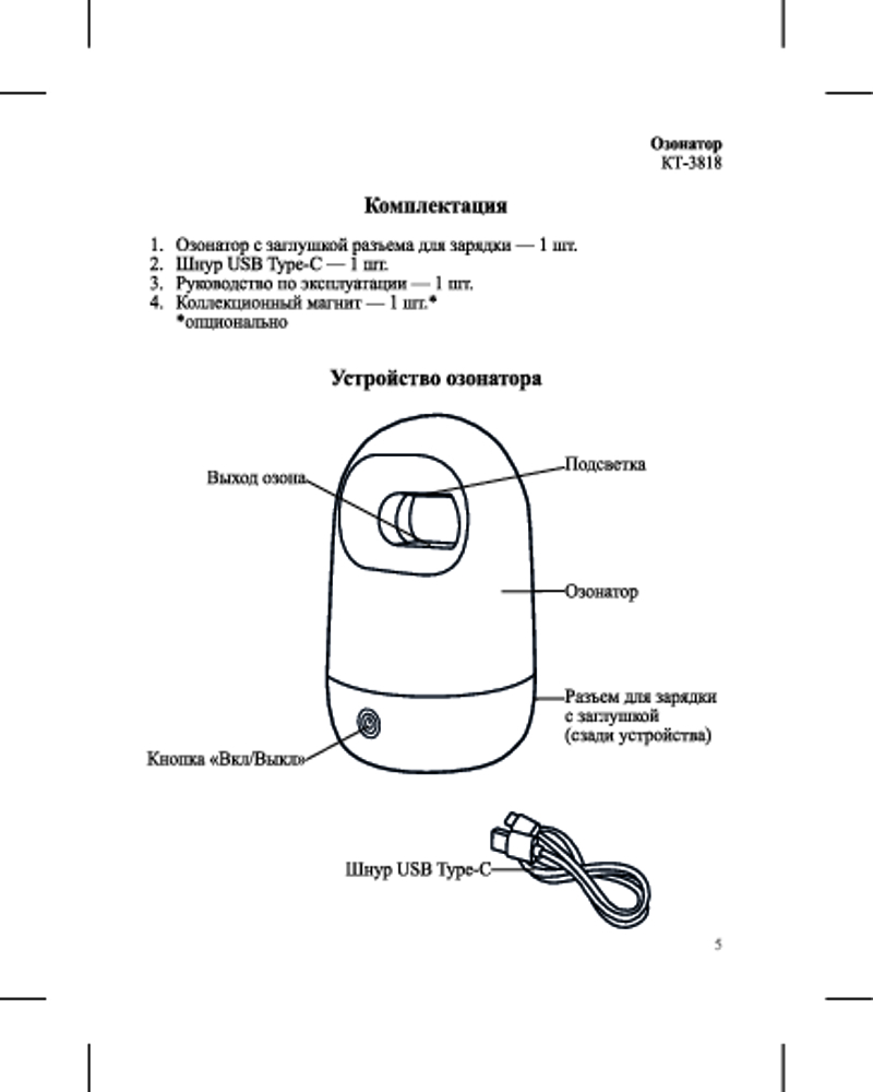 Озонатор КТ-3818 — это устройство, с помощью которого воздух в помещении насыщается озоном. Озонатор, вырабатывая безопасное количество озона, устраняет неприятные запахи, а также дезинфицирует воздух. |