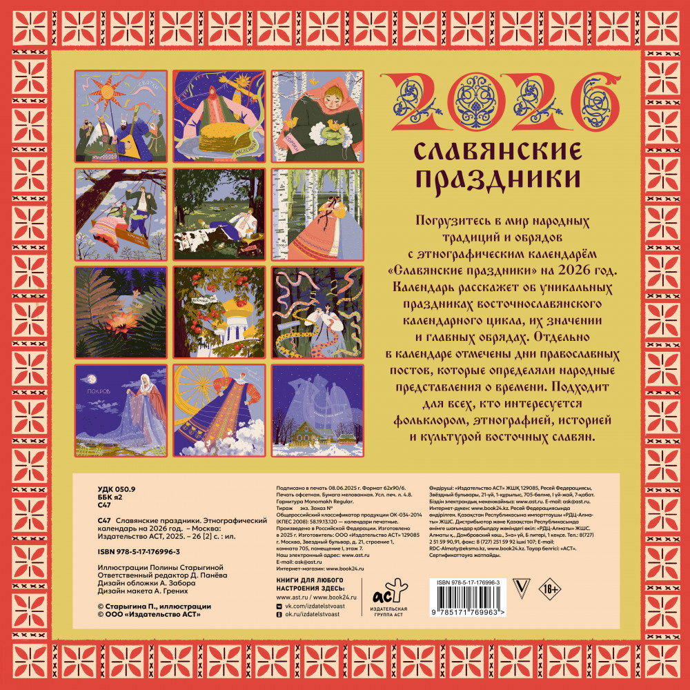 Серия: Календарь настенный на 2026 год Погрузитесь в мир народных традиций и обрядов с этнографическим календарём «Славянские праздники» на 2026 год. Календарь расскажет об уникальных праздниках восточнославянского календарного цикла, их значении и главных обрядах. Отдельно в календаре отмечены дни православных постов, которые определяли народные представления о времени. Подходит для всех, кто интересуется фольклором, этнографией, историей и культурой восточных славян. |