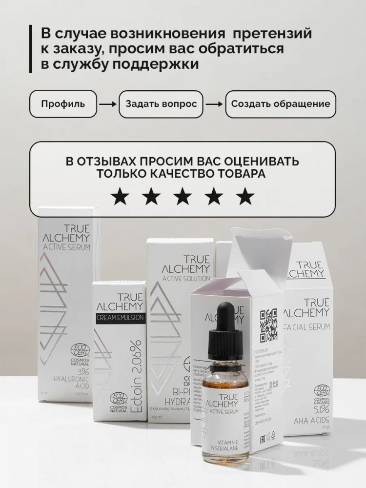 True alchemy Кремовая эмульсия для лица и области вокруг глаз «Multi-peptide complex 6% + Squalane 5% + Phytoceramides 1%»
