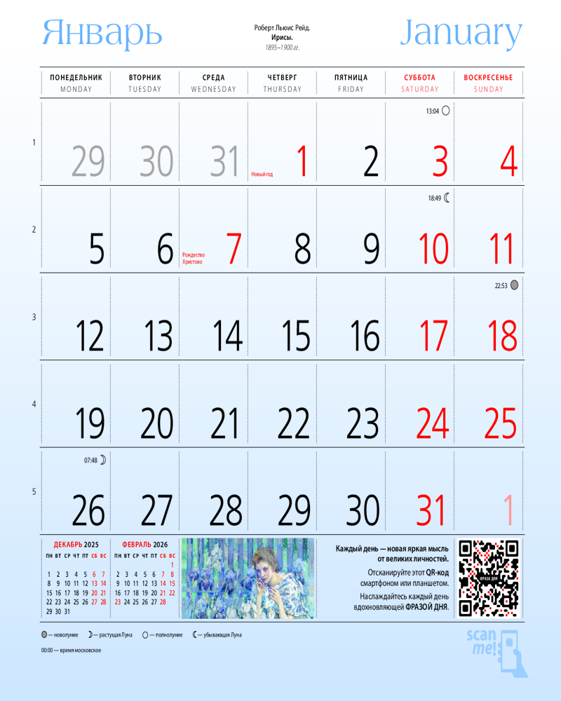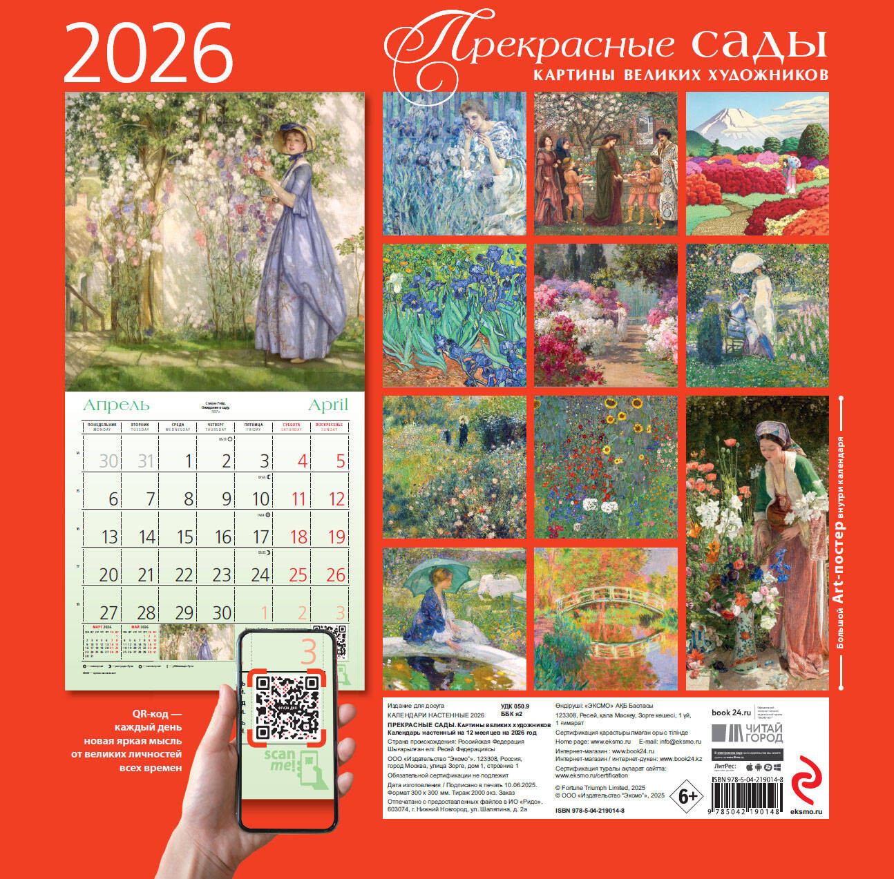 Календарь настенный на 2026 год «Прекрасные сады. Картины великих художников»В данный момент этот товар отсутствует в продаже. Возможно, у нас найдется аналогичный или похожий товар здесь. Серия: Календари настенные 2026 (300×300) Наши настенные календари отличаются высоким качеством исполнения! Тщательно подобранные иллюстрации, напечатанные на глянцевой бумаге высочайшего качества, станут настоящим украшением дома, а в календарной сетке найдется место для ваших планов: большие клетки позволят делать записи и организовать свой год! |