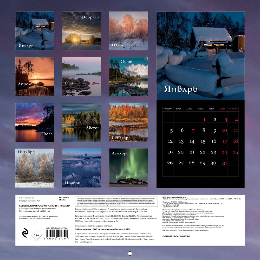 Календарь настенный на 2026 год «Карелия»В данный момент этот товар отсутствует в продаже. Возможно, у нас найдется аналогичный или похожий товар здесь. Серия: Календари настенные 2026 (300×300) Наши настенные календари отличаются высоким качеством исполнения! Тщательно подобранные иллюстрации, напечатанные на глянцевой бумаге высочайшего качества, станут настоящим украшением дома, а в календарной сетке найдется место для ваших планов: большие клетки позволят делать записи и организовать свой год! |
