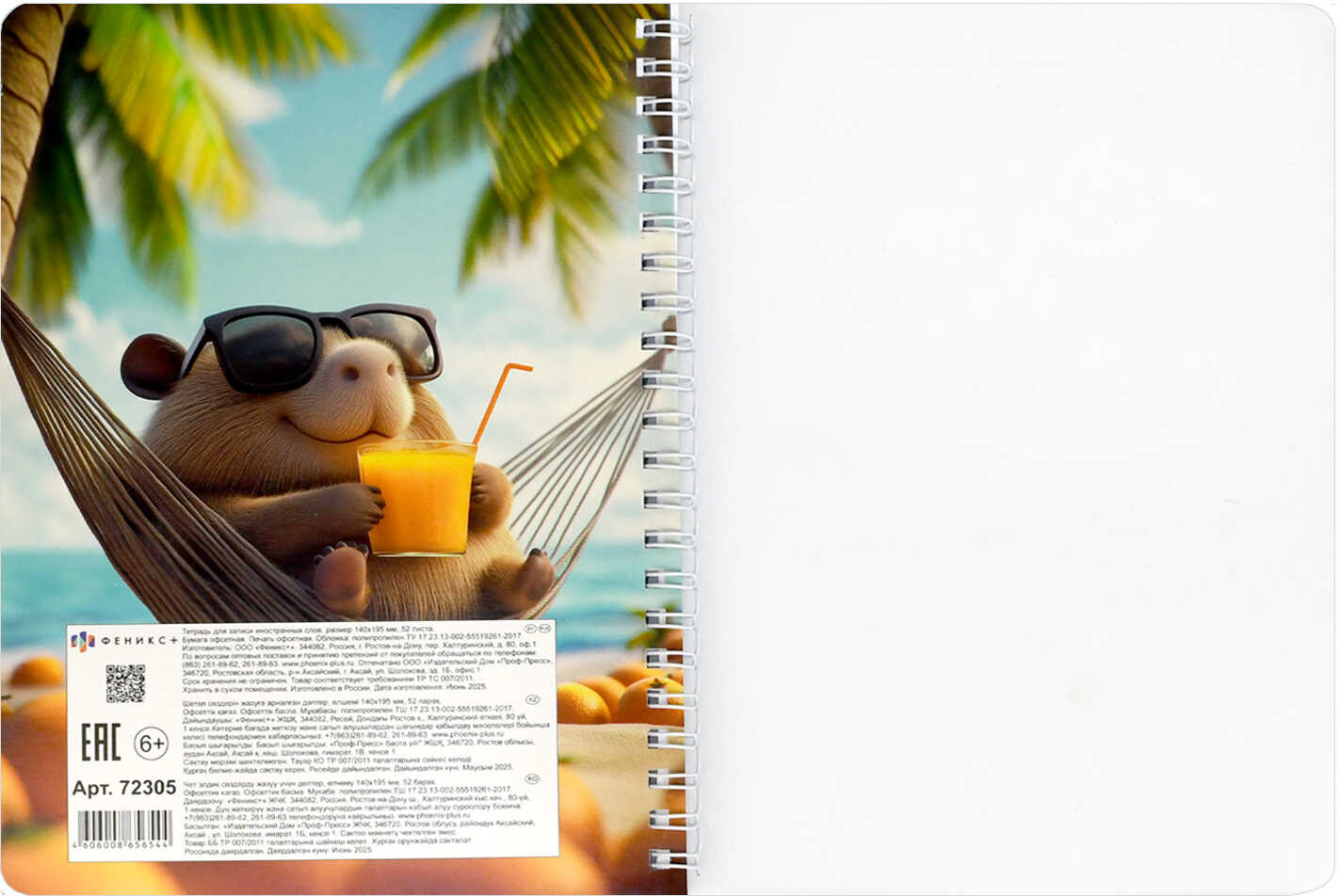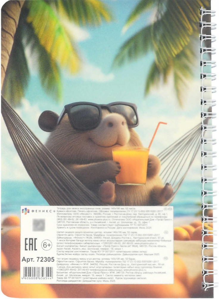 Феникс + Тетрадь для записи иностранных слов «Капибара на отдыхе»-35% +42