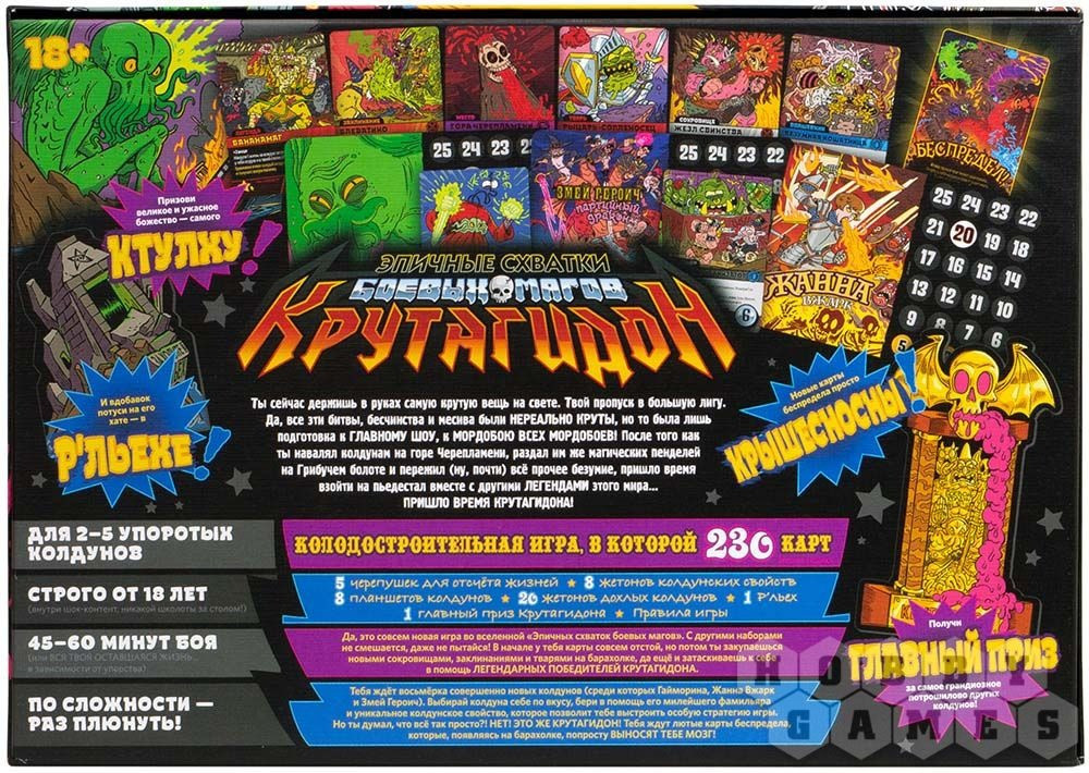 Hobby World Игра настольная «Эпичные схватки боевых магов. Крутагидон»новинка В данный момент этот товар отсутствует в продаже. Возможно, у нас найдется аналогичный или похожий товар здесь. Ты сейчас держишь в руках самую крутую вещь на свете. Твой пропуск в большую лигу. Да, все эти битвы, бесчинства и месива были нереально круты, но то была лишь подготовка к главному шоу, к мордобою всех мордобоев! После того как ты навалял колдунам на горе Черепламени, раздал им же магических пенделей на Грибучем болоте и пережил (ну, почти) всё прочее безумие, пришло время взойти на пьедестал вместе с другими легендами этого мира... Пришло время Крутагидона! |
