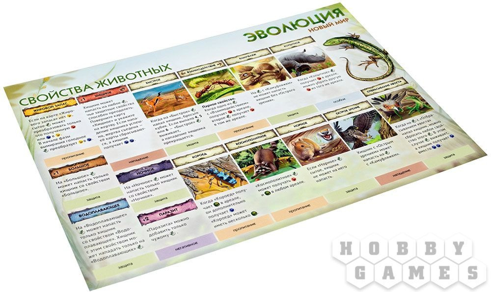 Серия: Эволюция В апреле 2010 года вышло первое издание настольной игры «Эволюция», которая перевернула ход истории. Она успешно была переведена на десятки языков, пустила корни во многих странах и разрослась в целое древо дополнений и сиквелов. Представляем вам юбилейное издание — «Эволюция. Новый мир». Это самостоятельная игра с красочными иллюстрациями, обновленными свойствами и механиками. Победителем становится игрок, который в конце партии наберет больше очков за своих выживших животных и добавленные им свойства. Партия состоит из шести эпох, а каждая эпоха — из последовательных фаз развития, ареалов, питания и вымирания. |
