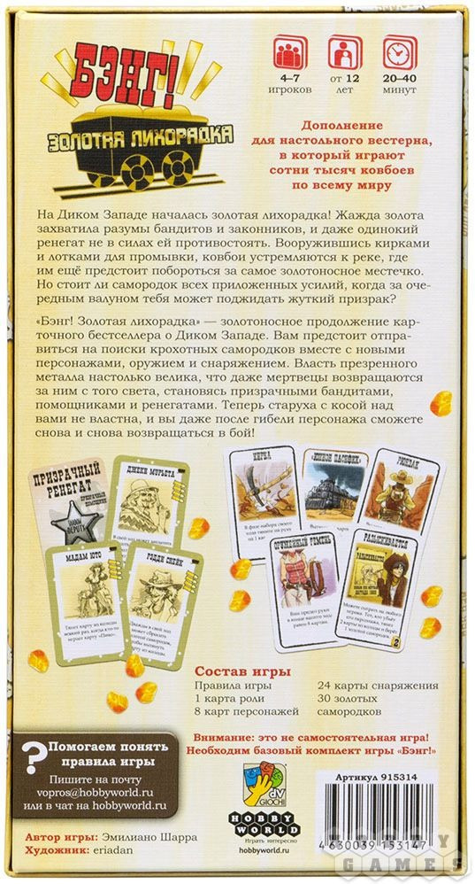 | Hobby World Игра настольная «Бэнг! Золотая лихорадка»новинка -23%