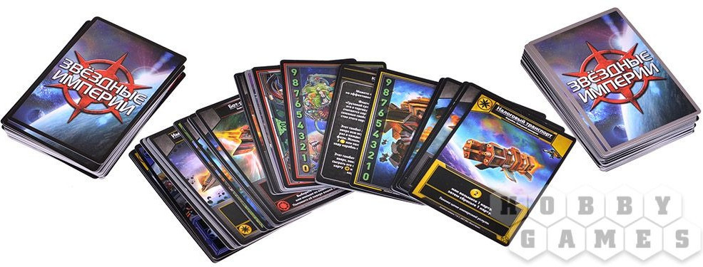 «Звёздные империи» — колодостроительная игра на космическую тематику для 1-6 человек. Игрокам предстоит собрать свой флот, оборудовать базы и аванпосты, а затем атаковать друг друга для снижения очков влияния противника. Все игроки начинают в равных условиях с личной колодой карт кораблей. Докупая карты в свою колоду и используя различные комбинации карт с уникальными свойствами, игроки сами придумывают стратегию во время партии: вырабатывают защиту от атак противника и ищут бреши в обороне противника. Можно пользоваться силой, хитростью или богатством, но для победы всем игрокам одинаково понадобятся мастерство, интуиция и хладнокровный расчёт!