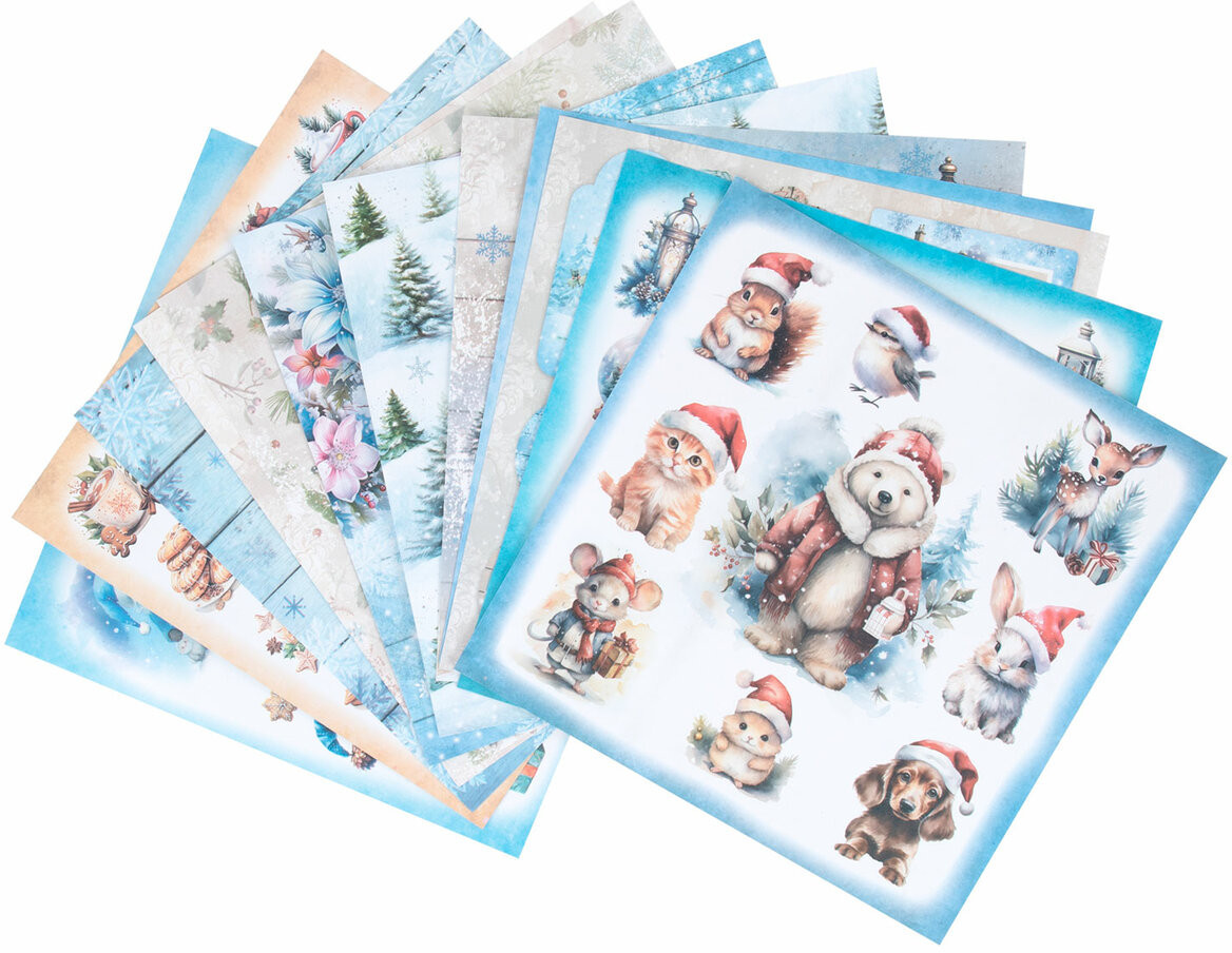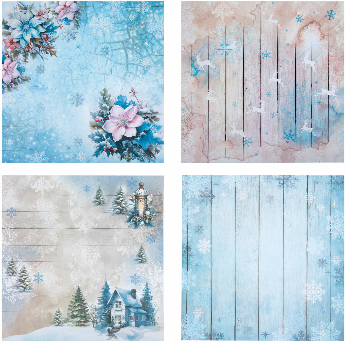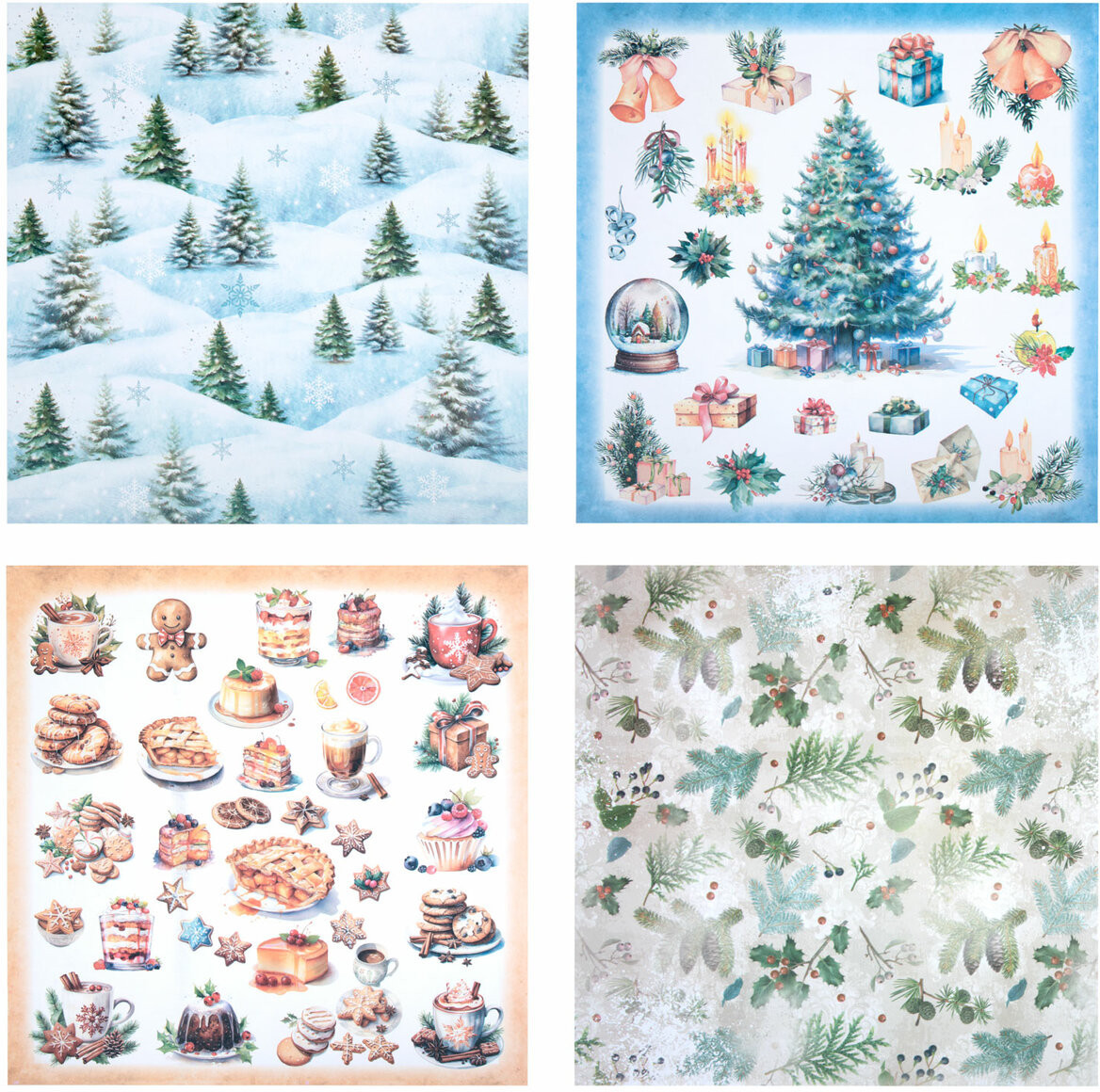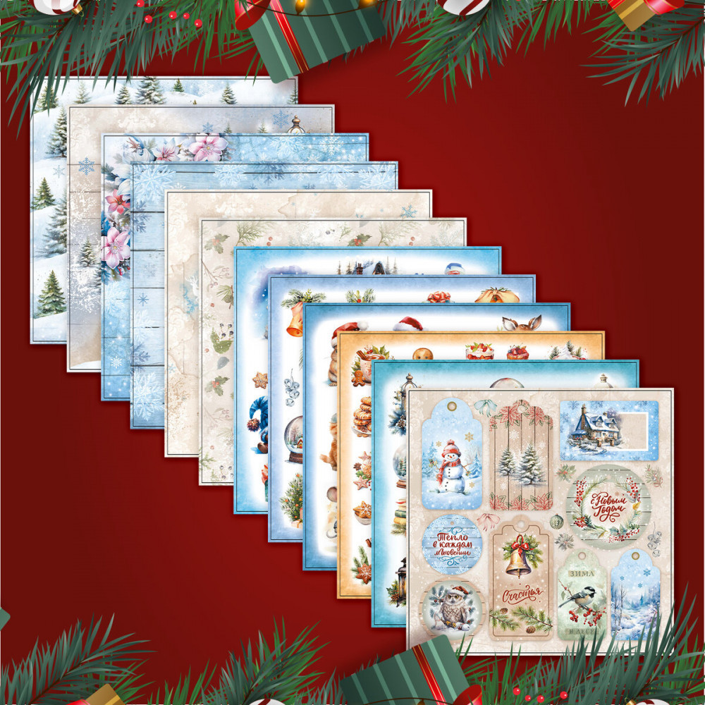 Стиль «Новогодний дизайн», яркий и праздничный, прекрасно подойдет для создания изысканных фотоальбомов, семейных альбомов и других утонченных изделий. В набор входят 12 листов двусторонней бумаги плотностью 180 г/м², содержащих 12 вариантов дизайна: 10 фоновых дизайнов и 2 набора с фигурными вырубками для вырезания. Стандартный размер бумаги 30×30 см делает ее удобной для использования в создании скрап-альбомов. Матовая бумага отличается высоким качеством печати.