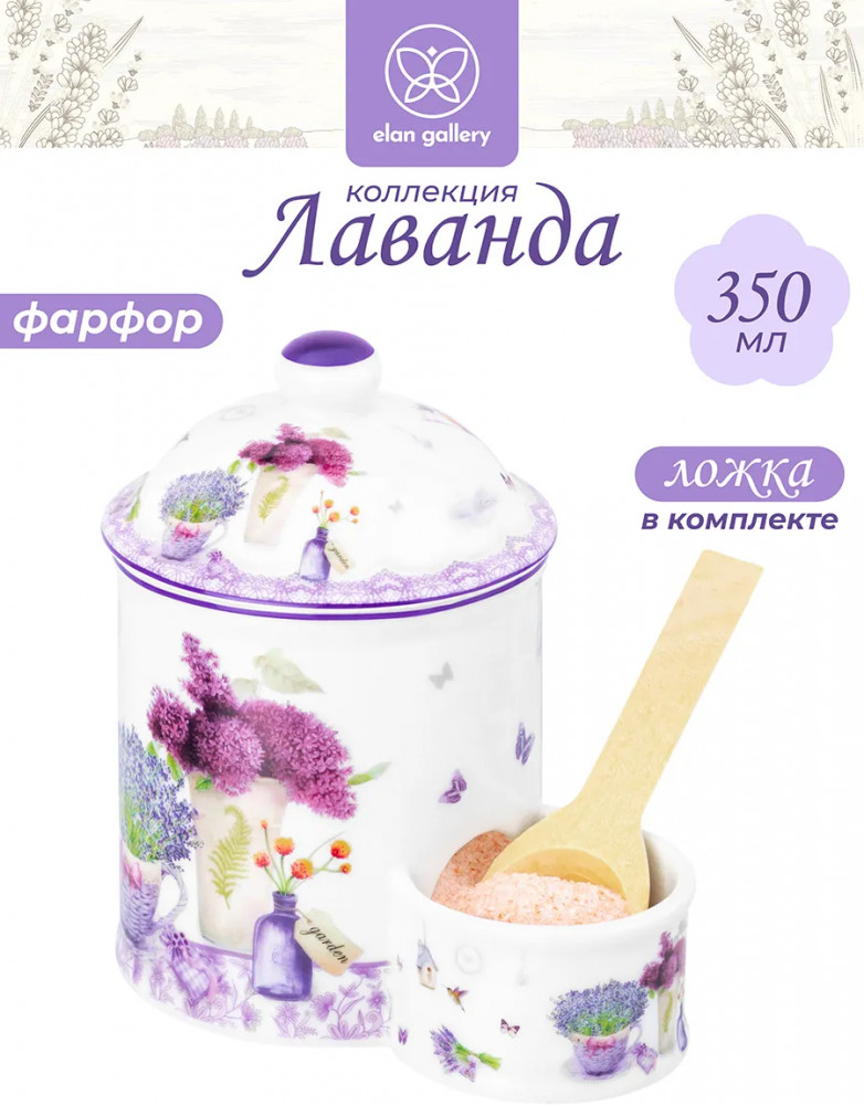 | Elan Gallery Банка для соли с деревянной ложкой «Лаванда»+171 (бонус)