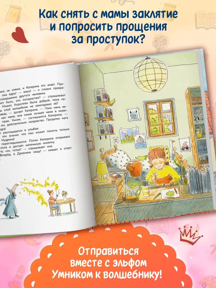 Катерина считает свою мать королевой — иногда злой, иногда доброй. В их доме живёт швейцар — людоед Прохвост, а город населён драконами, ведьмами и рыцарями. Вместе с эльфом Умником Катерина отправляется на поиски средства, которое поможет снять с мамы заклятие, наложенное злым волшебником Саламандром. На своём пути Катерина встречает дракона Клыка, юного рыцаря Ланселота, ведьму Мудрину и фею Сластину. |