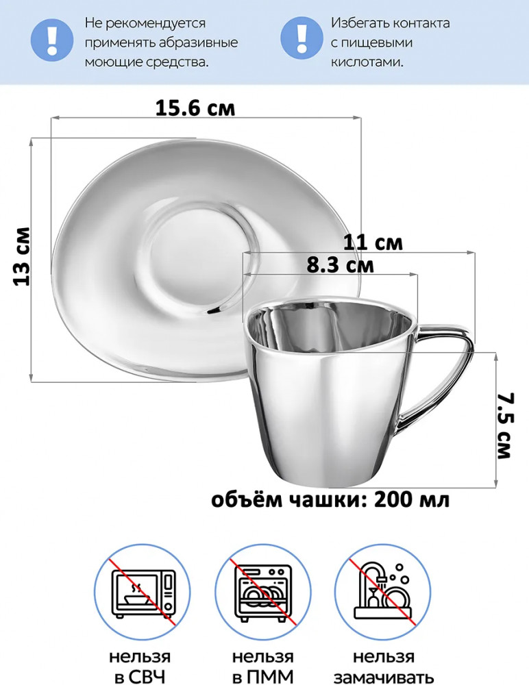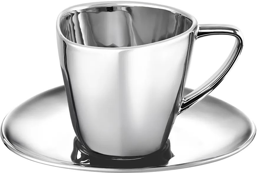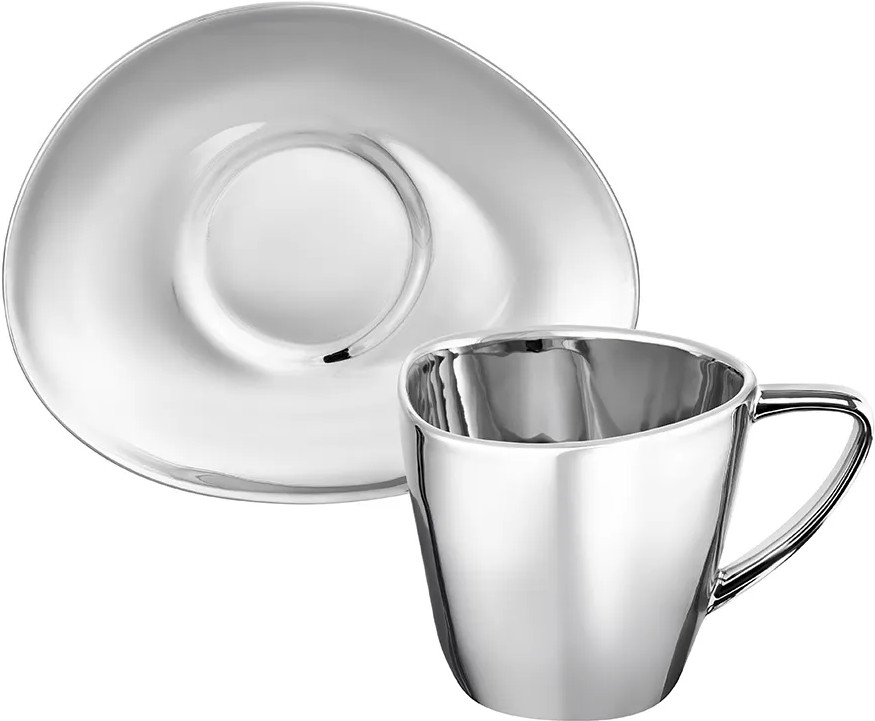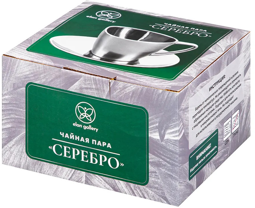 Чайная пара «Серебро» от бренда Elan Gallery станет стильным дополнением вашей кухни. Оба изделия выполнены из фарфора. Размер чашки — 11×8,3×7,5 см, объём — 200 мл. Размер блюдца — 15,6×13×2 см. Необычная геометрическая форма и серебряный оттенок придают посуде элегантный вид. Спокойный и гармоничный дизайн сочетает в себе благородство серебра и изысканность фарфора, создавая уникальный образ изделия. Фарфоровая посуда надолго сохраняет привлекательный внешний вид, не впитывает запахи и цвет напитков. Серебряное покрытие придаёт изделию неповторимый блеск и безопасно при контакте с напитками.
