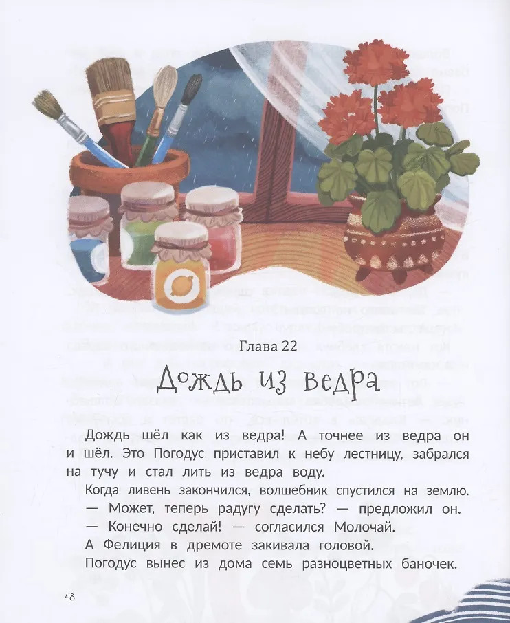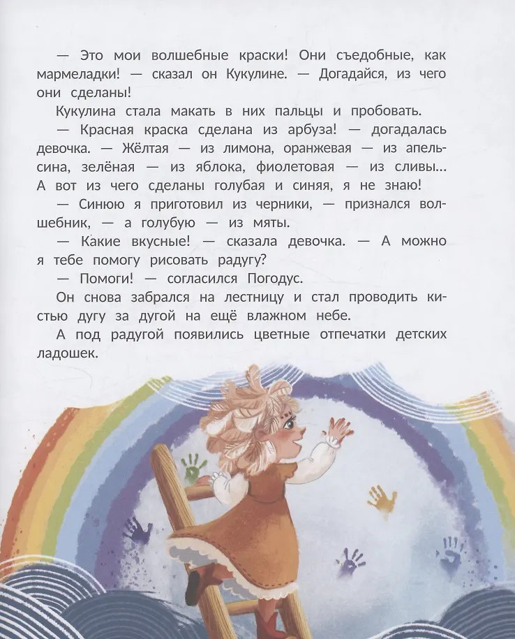 Серия: Сказочное детство В домике на окраине леса живёт волшебник по имени Погодус. Он следит за сменой времён года, вызывает дождь, снег и туман, рисует радугу, перекрашивает к весне зайцев, готовит луну и приклеивает к небу звёзды. Стареющий волшебник чувствует, что ему нужен ученик, и однажды находит у себя в шляпе яйцо, из которого вылупляется маленькая девочка... |