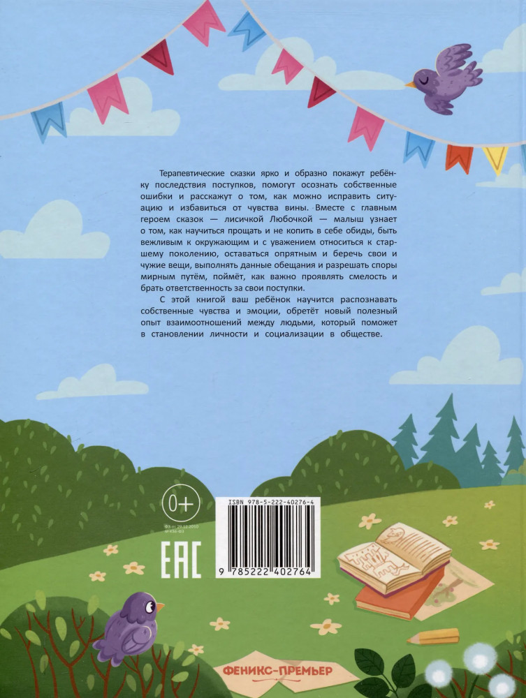 Серия: Энциклопедия для малышей в сказках Терапевтические сказки ярко и образно покажут ребёнку последствия поступков, помогут осознать собственные ошибки и расскажут о том, как можно исправить ситуацию и избавиться от чувства вины. Вместе с главным героем сказок — лисичкой Любочкой — малыш узнает о том, как научиться прощать и не копить в себе обиды, быть вежливым к окружающим и с уважением относиться к старшему поколению, оставаться опрятным и беречь свои и чужие вещи, выполнять данные обещания и разрешать споры мирным путём, поймёт, как важно проявлять смелость и брать ответственность за свои поступки. |