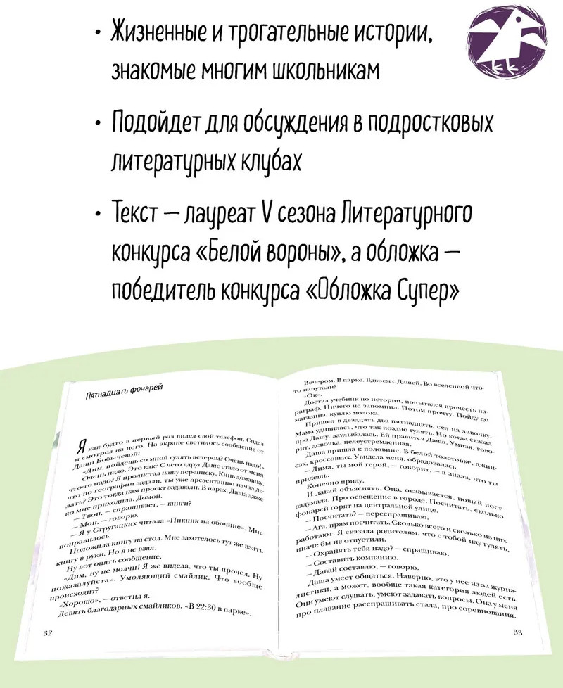 💳 Оплатить за товар можно при получении 🇰🇿 Есть бесплатная доставка по Казахстану 🎁 Копите бонусы с каждой покупки Диме неожиданно пишет девочка, которая ему нравится, и приглашает помочь в подготовке статьи для городской газеты. Весь класс перекрашивает волосы в разные цвета, чтобы показать учительнице, что она не права. Андрей вынужден делать домашнее задание в паре с одноклассницей, которая ему не нравится, но в конце концов он видит в ней личность и понимает, что судить о человеке только по его внешности — не лучшее решение... |