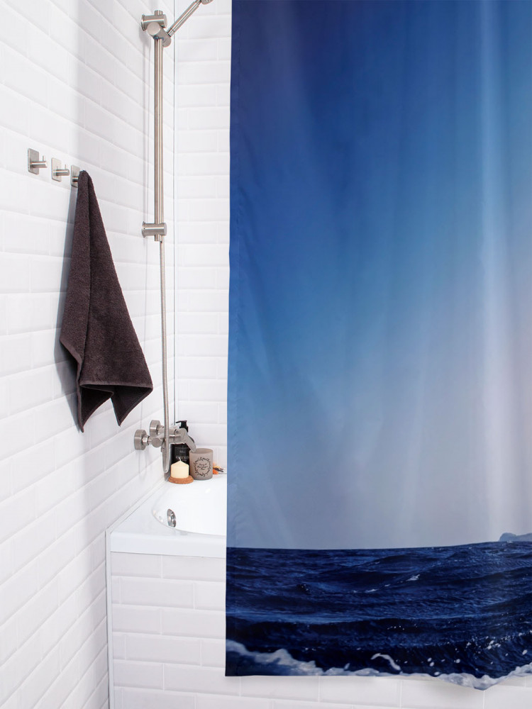 Штора для душа из прочной ткани «сатен» (100% полиэстер) и водоотталкивающей пропиткой, которая обеспечивает защиту от брызг и влаги. Плотность 80 г/м2. Прорези для колечек надежно прострочены оверлоком и не ржавеют. Принт нанесен только на внешнюю часть методом сублимационной гипоаллергенной печати, обеспечивающей стойкость и яркость рисунка даже после множества стирок. Штора не нуждается в утяжелителе и магнитах, прекрасно расправляясь под собственным весом. Цветная полоса на обратной стороне является обязательной для корректной печати принта. Набор пластиковых крючков (12 шт.) идут в комплекте! Штору в душевую можно стирать при температуре 30-40 градусов (деликатный режим). Рекомендуем постирать и прогладить изделие при слабой степени нагрева («шелк», 110°) перед использованием для дополнительного закрепления принта. Яркость рисунка может отличаться от изображения на сайте. Допустимое отклонение в размерах составляет ± 5 см. |