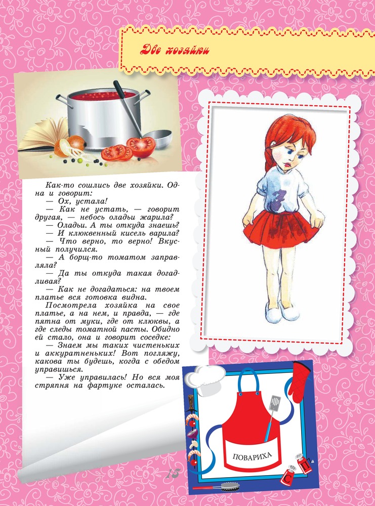 В данный момент этот товар отсутствует в продаже. Возможно, у нас найдется аналогичный или похожий товар здесь. Настоящая девочка не боится никакой работы! Особенно если это касается домашних дел. Ведь каждая хозяйка должна уметь и шить, и убирать, и готовить, и гостьей принимать, да и про внешний вид не забывать. А если заниматься домашними хлопотами с хорошим настроением, то они превратятся в увлекательное занятие.