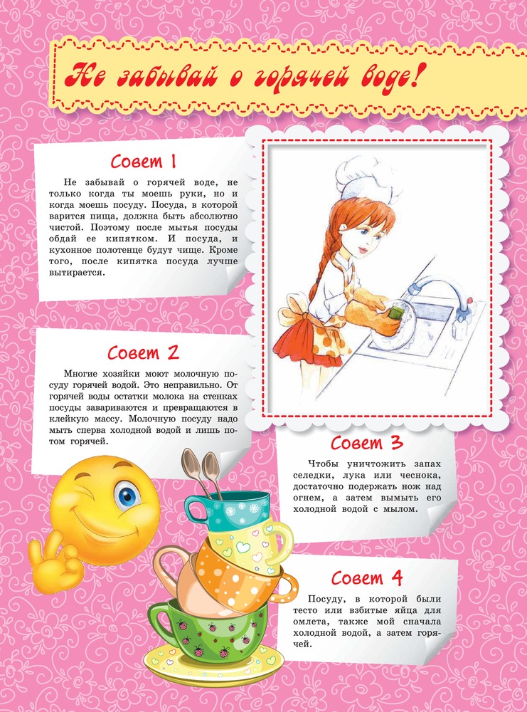 Как приготовить разные салаты, сварить щи, сделать котлеты? Как правильно убирать комнату, вытирать пыль, мыть полы? Как ухаживать за собой и своими вещами? Как позаботиться о своем здоровье? Как организовать и весело отметить любой праздник? Обо всем этом и многом другом ты узнаешь, прочитав эту книгу, советы которой не раз пригодятся тебе в жизни. |