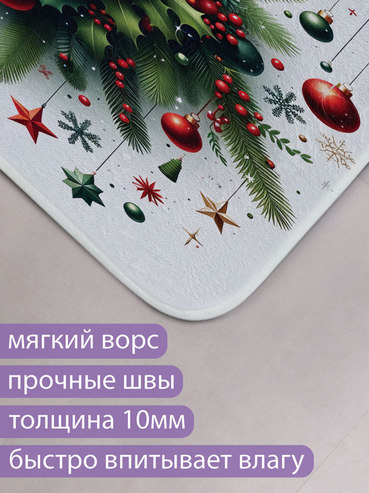 Коврик для ванной противоскользящий на пол 77×52 см станет ярким акцентом для создания домашнего уюта в интерьере вашей ванной комнаты. Половик для ванной, душевой и туалета выполнен из мягкого и приятного материала велсофт (100% полиэстер) с тонкой прослойкой из поролона. Велсофт — мягкий ворс, который обеспечивает комфортное прикосновение при хождении босиком. Основание изделия изготовлено из нетканого материала с антискользящим покрытием, что предотвращает его скольжение по плитке и кафелю. Края прямоугольного коврика надежно обработаны, не распушатся (не деформируется) во время эксплуатации. Быстро высыхает и не теряет своих свойств при длительном контакте с влагой. Универсальное изделие подходит для использования в бассейне, сауне, спальне в качестве прикроватного коврика и как коврик для детей. Аксессуар для ванной мгновенно впитывает влагу, быстро сохнет и не линяет.