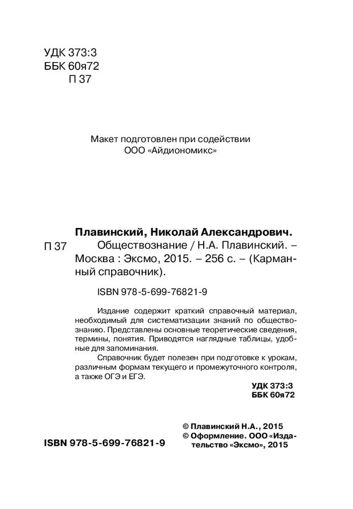 Обществознание. Карманный справочникНиколай Александрович Плавинский В данный момент этот товар отсутствует в продаже. Возможно, у нас найдется аналогичный или похожий товар здесь. Серия: Карманный справочник (на спирали) Издание содержит краткий справочный материал, необходимый для систематизации знаний по обществознанию. Представлены основные теоретические сведения, термины, понятия. Приводятся наглядные таблицы, удобные для запоминания. |