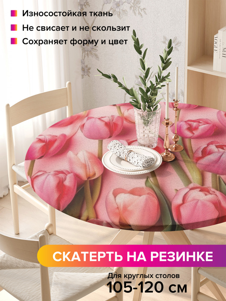 JoyArty Скатерть круглая на резинке «Тюльпаны»