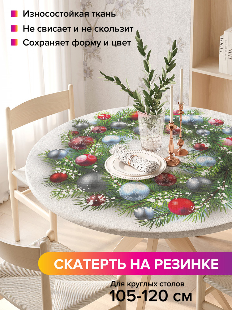JoyArty Скатерть круглая на резинке «Яркий праздничный венок»