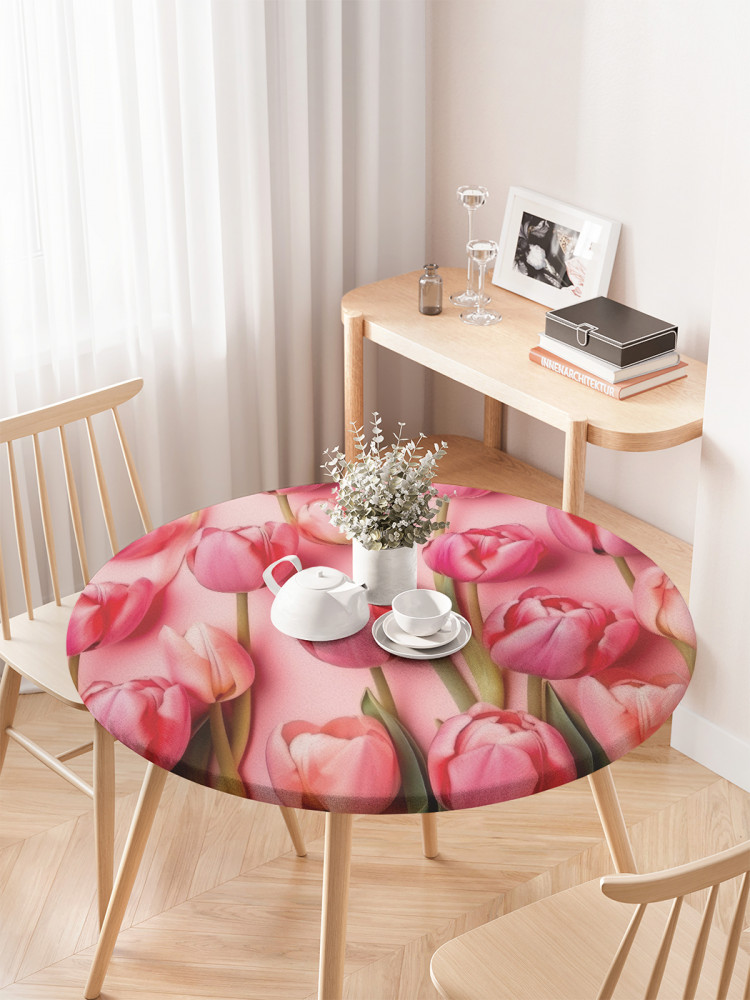JoyArty Скатерть круглая на резинке «Тюльпаны»