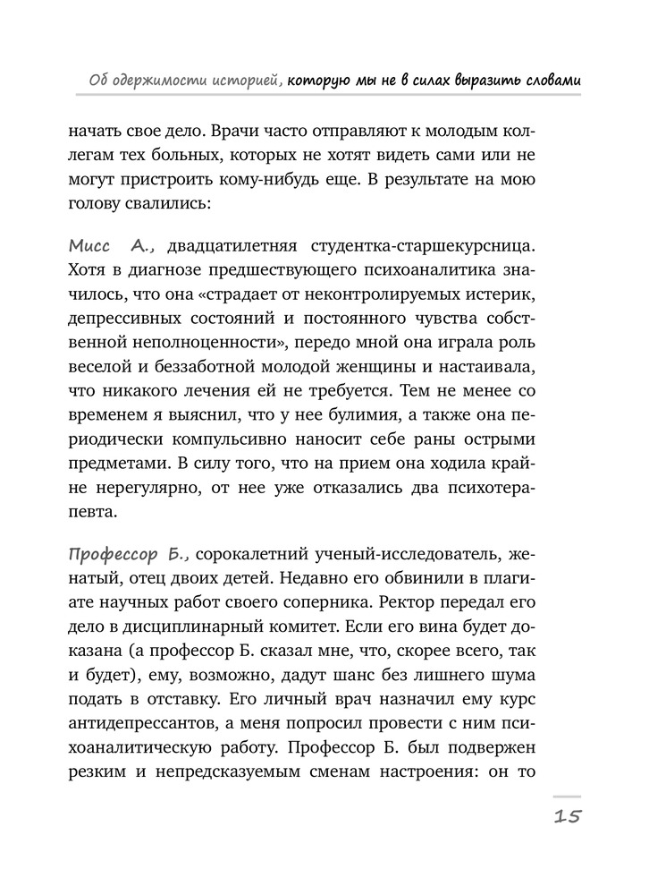 Лучшее, что мною прочитано в последний месяц. По следам Ялома и Сакса Гросс проникся произведением книги о клинических случаях с позиции психоанализа. По-настоящему, гуманная, теплая и корректная книга о переменах. Рекомендую настоятельно всем, кому интересен психоанализ и психотерапевтический роман.