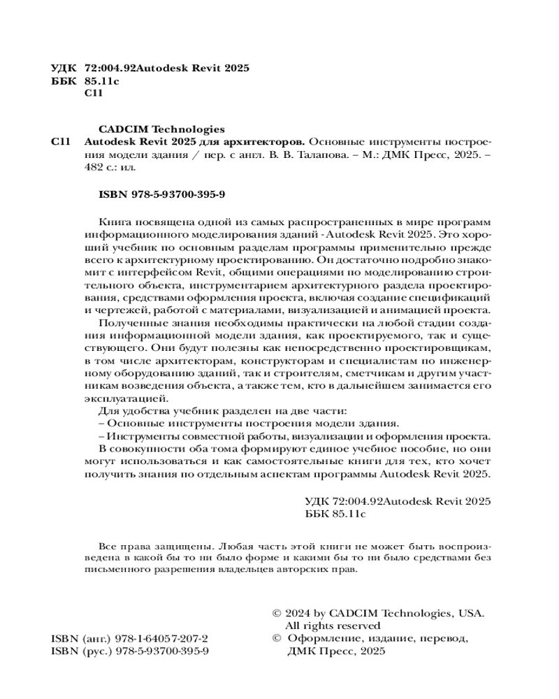 💳 Оплатить за товар можно при получении 🇰🇿 Есть бесплатная доставка по Казахстану 🎁 Копите бонусы с каждой покупки Серия: Cadcim Technologies Книга представляет собой первую часть руководства по работе с системой Autodesk Revit 2025, которая фактически стала стандартом в области информационного моделирования зданий. В ней рассматриваются этапы моделирования зданий и подробно описаны инструменты, которые для этого необходимы. Примеры и упражнения помогут закрепить навыки работы с системой. Обе части руководства можно читать как последовательно, так и по отдельности. Издание адресовано архитекторам, дизайнерам, конструкторам, инженерам, студентам и преподавателям, а также будет полезно строителям, сметчикам и всем участникам возведения объекта, которые в дальнейшем занимаются его эксплуатацией. |