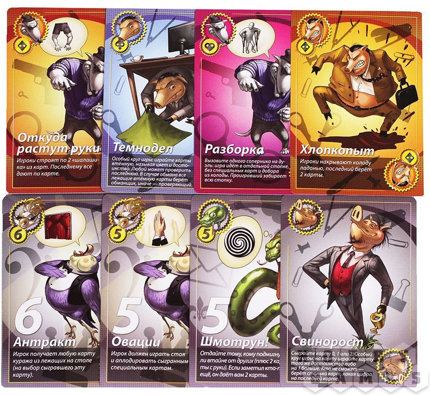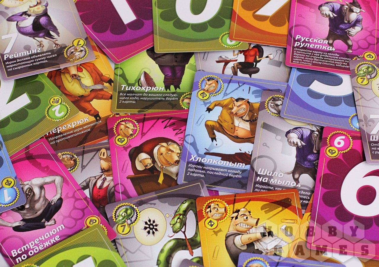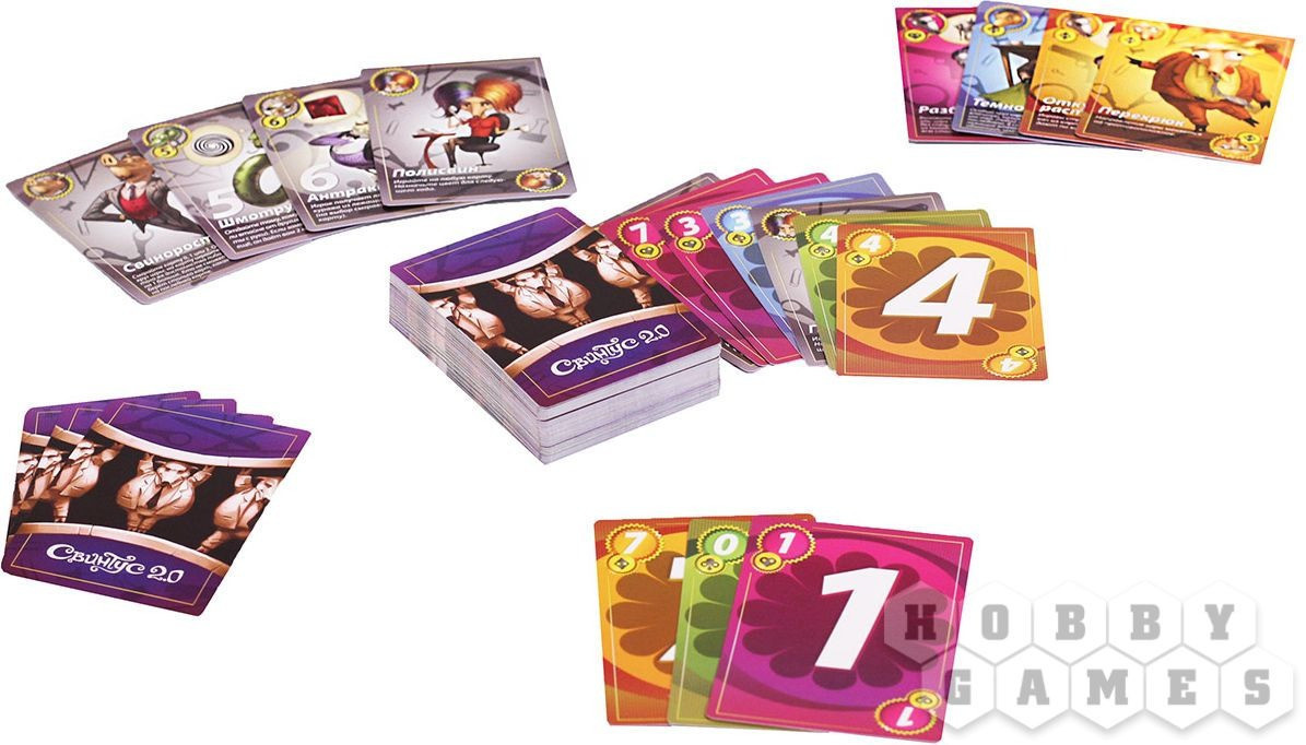 Настольная игра «Свинтус 2.0» — быстрая и весёлая карточная игра для 2-10 человек практически любого возраста. Игра основана на игре «Свинтус», которая быстро стала очень популярна за счёт простоты своих правил, динамичности и настоящего кутежа во время партий. Всё что Вам понадобится — собственно игра, хорошая реакция и внимательность, а также компания товарищей, готовых как следует поразвлечься! |