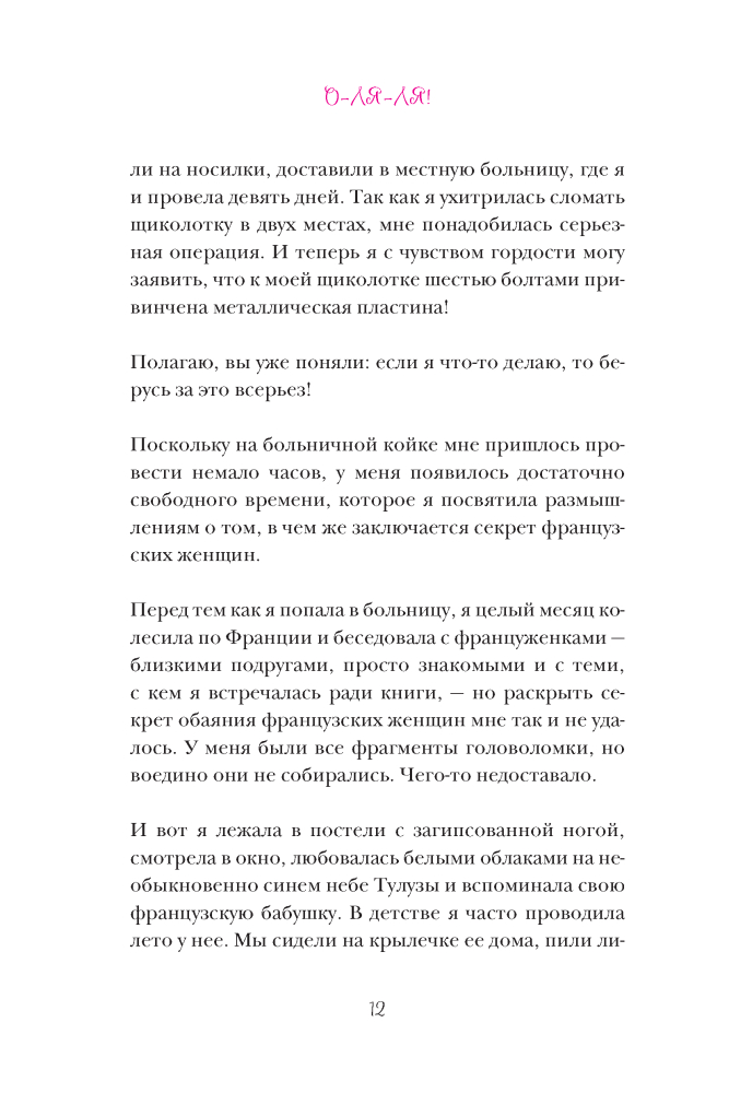 О-ЛЯ-ЛЯ! Французские секреты великолепной внешностиВ данный момент этот товар отсутствует в продаже. Возможно, у нас найдется аналогичный или похожий товар здесь. Серия: Психология. М & Ж К 30 годам все француженки очаровательны и прекрасны, даже если от природы у них весьма средние данные. Не стремясь следовать трендам, они тем не менее всегда выглядят стильно. Ложиться под нож пластического хирурга – это не про них! Француженки умеют стареть едва заметно и очень достойно. Может показаться, что безупречный вкус и невероятный шарм они впитывают еще с молоком матери… Хорошие новости! Всему этому можно научиться. Впервые автор бестселлера «Француженки не спят в одиночестве» расскажет, чему ее научили самые желанные женщины планеты. |