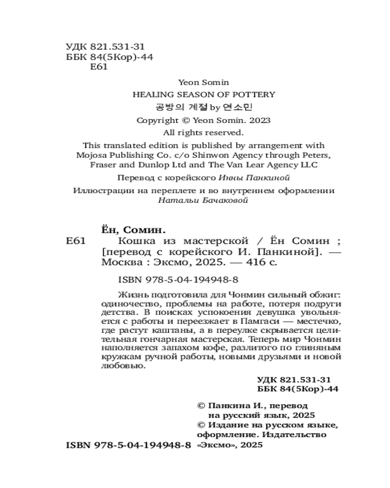 Серия: Кофе и котики Жизнь подготовила для Чонмин сильный обжиг: одиночество, проблемы на работе, потеря подруги детства. В поисках успокоения девушка увольняется с работы и переезжает в Памгаси — местечко, где растут каштаны, а в переулке скрывается целительная гончарная мастерская. Теперь мир Чонмин наполняется запахом кофе, разлитого по глиняным кружкам ручной работы, новыми друзьями и новой любовью. |