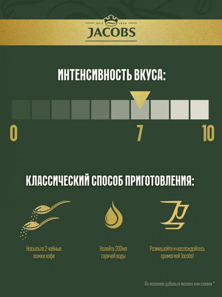 Выдающийся бренд кофе с богатым наследием, ставший настоящей иконой в мире кофейной культуры. Зародившись в далеком 1895 году благодаря вдохновению немецкого предпринимателя Иоганна Якобса, бренд сразу завоевал сердца любителей кофе. В настоящее время Jacobs является гордой частью семьи компаний Jacobs Douwe Egberts, олицетворяя изысканный вкус и безупречное качество.
