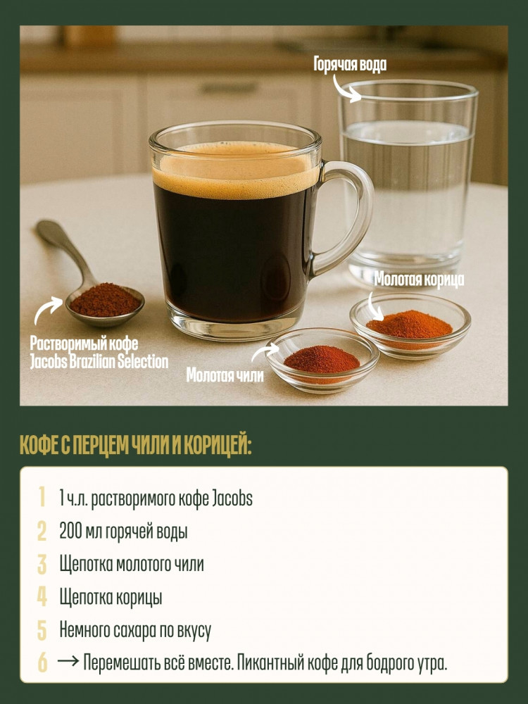 Jacobs Brazilian Selection из бразильской зёрен, которые бережно выращены и собраны на солнечных плантациях Бразилии, мастерски обжарены для создания неповторимого интенсивного вкуса и аромата кофе!