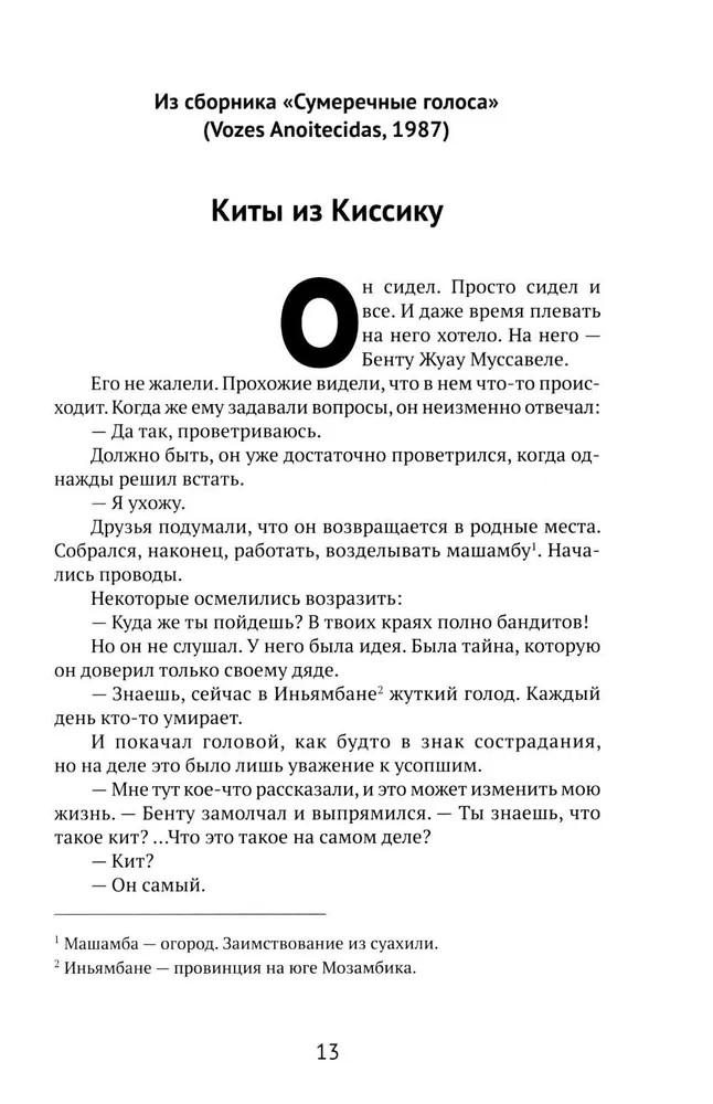 Миа Коуту в мире давно знаменит своей романной прозой и на русском языке также заговорил впервые как автор романа «Божьи яды и чертовы снадобья» (Иностранная литература, 2012, № 8, перевод Е. Хованович). Однако в нашу книгу вошли избранные рассказы из семи его авторских сборников: от первого «Сумеречные голоса» (1987) до самого недавнего «Легкие недомогания вечности» (2023). |