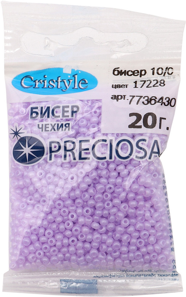 Чешский бисер Preciosa — это качество, которому доверяют мастера всего мира. Каждая партия бисера имеет одинаковый размер и цвет, чтобы ваши узоры и вышивка получились ровными, без изъянов. Технологии производства бисера Preciosa позволяют сохранять цвет и блеск длительное время, чтобы поделки из него радовали вам долгие годы. Вышитые бисером изделия допускается стирать в деликатном режиме или вручную. Используйте мягкие моющие средства, избегайте трения. Температура воды не должна превышать 40 градусов Цельсия. Размер: 10/0 (2,3 мм). Диаметр отверстий 0,7-0,8 мм.