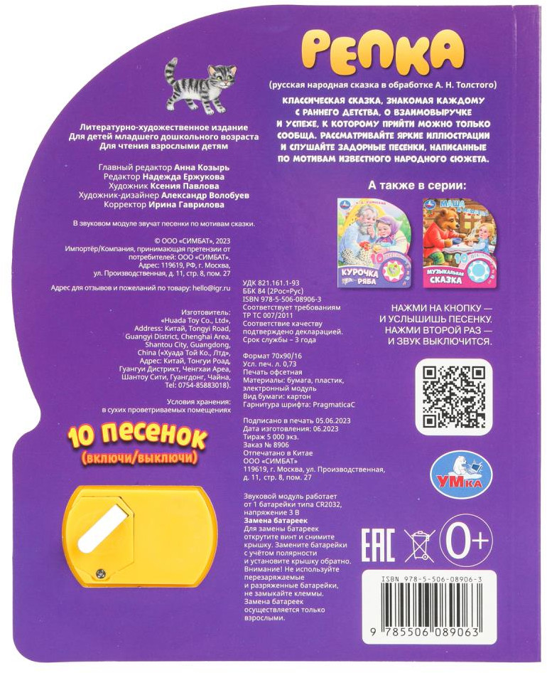 Серия: Музыкальная сказка Озвученная книга «Репка» из серии «Музыкальная сказка» ТМ «УМка» станет прекрасным подарком для малыша: |