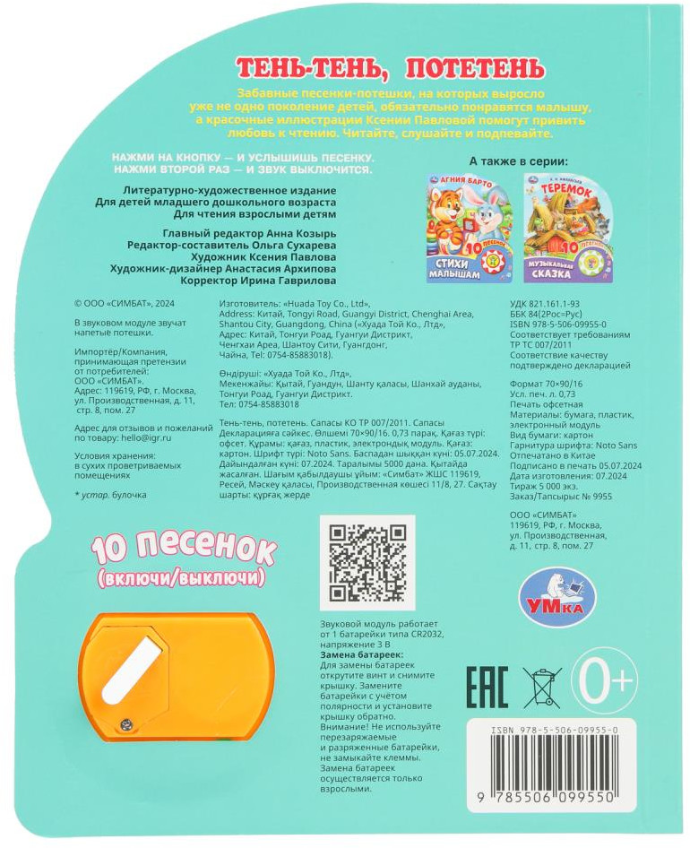 | УМка Книга озвученная «Тень-тень, потетень»+110 (бонусов)