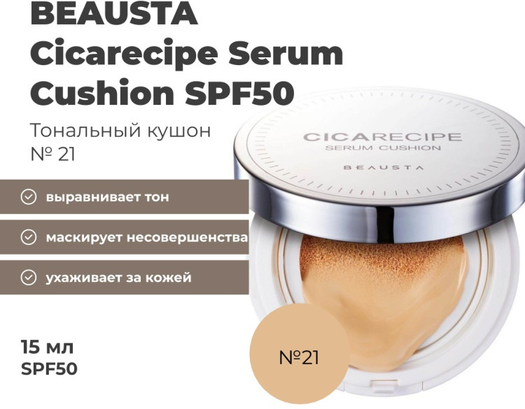 Кушон для лица «Cicarecipe Serum Cushion» SPF50, оттенок 21 Light Beige