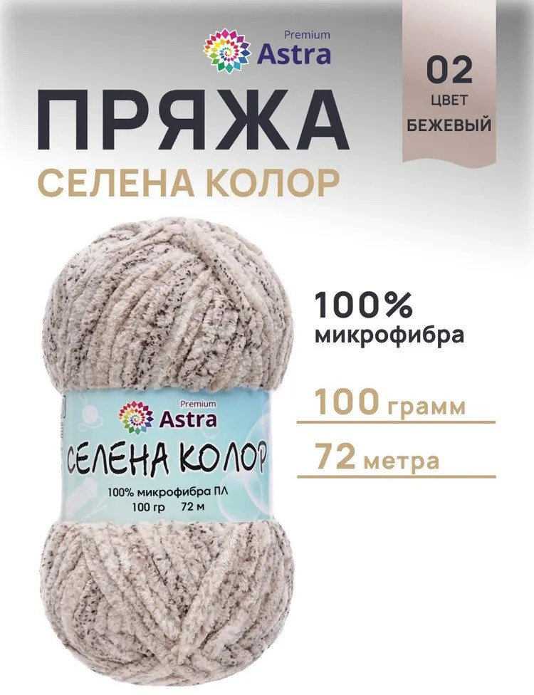 Пряжа «Селена Колор» от Astra Premium привлекает внимание нежнейшим велюровым ворсом, небольшим блеском, а также секционными расцветками в пастельной цветовой палитре. «Селена Колор» изготовлена из 100% микрополиэстера — мягкого и гипоаллергенного волокна. Нить быстро вяжется спицами или крючком, ворс не выпадает. Готовые изделия получаются воздушными, с объемной фактурой, легкими и приятными даже для нежной кожи.