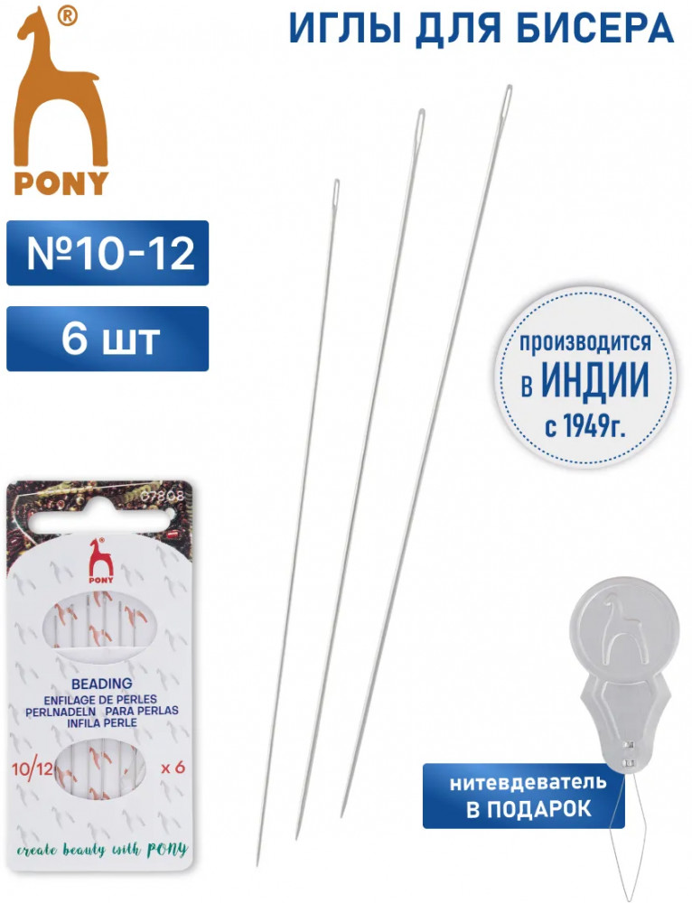 Набор игл ручных для бисера с нитковдевателем «Beading» | Beading | Pony