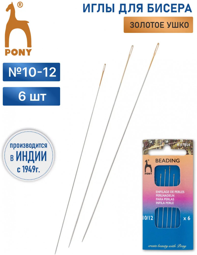 Pony Набор игл для бисера ручных с золотым ушком «Beading»-20%
