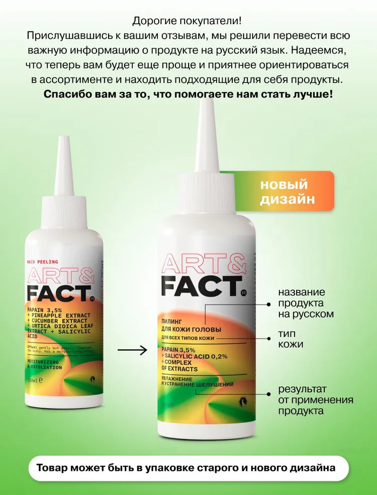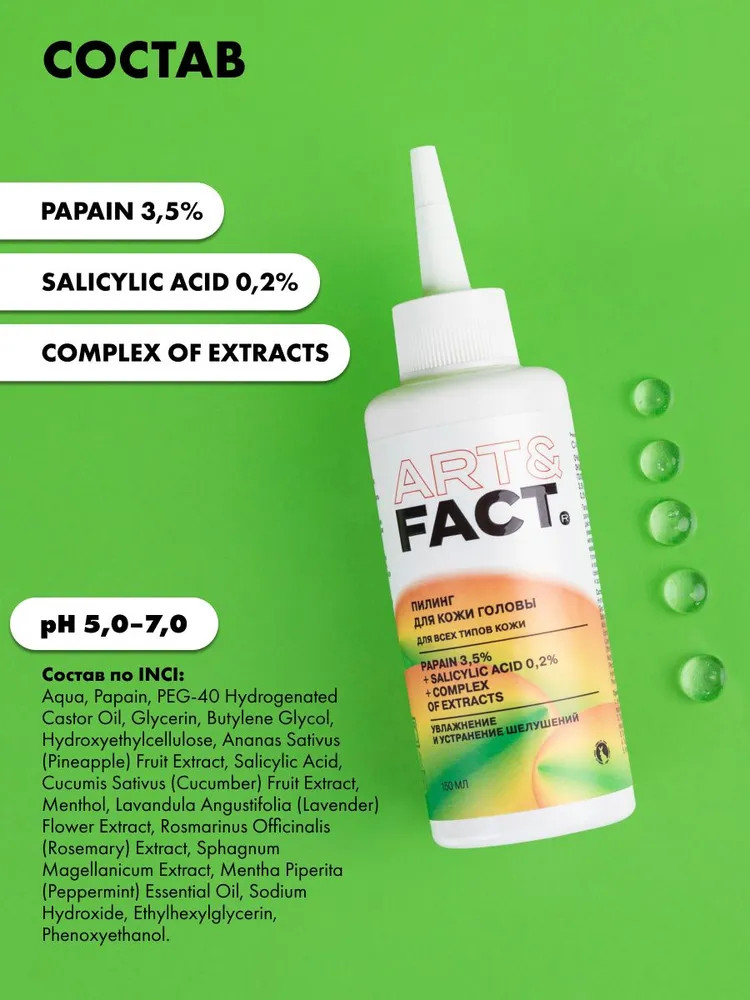 Art&Fact Пилинг для кожи головы энзимный «Papain 3.5% + Salicylic Acid 0.2%+ Complex Of Extracts»