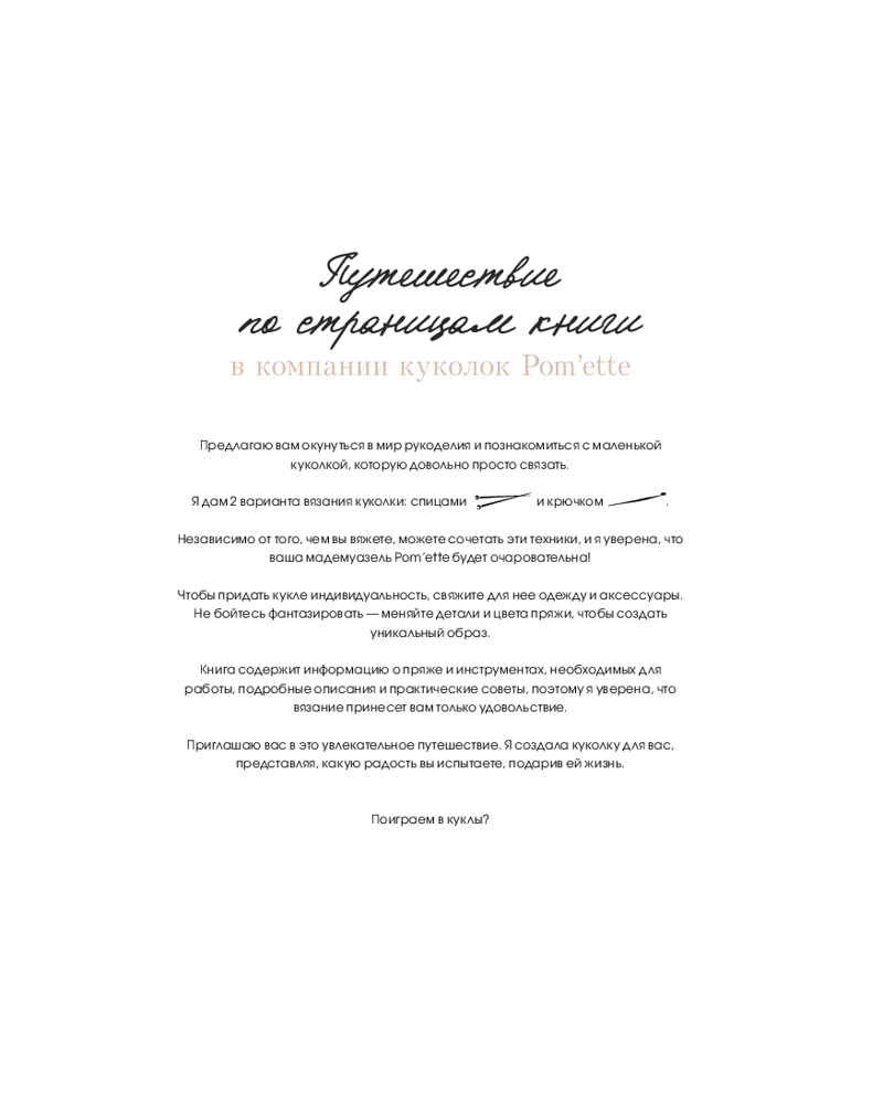 Серия: Звезды рукоделия. Бестселлер из Франции Погрузитесь в мир вязания, наполненный изяществом и волшебством, вместе с куколкой Pom’ette! В этой книге вас ждут: |