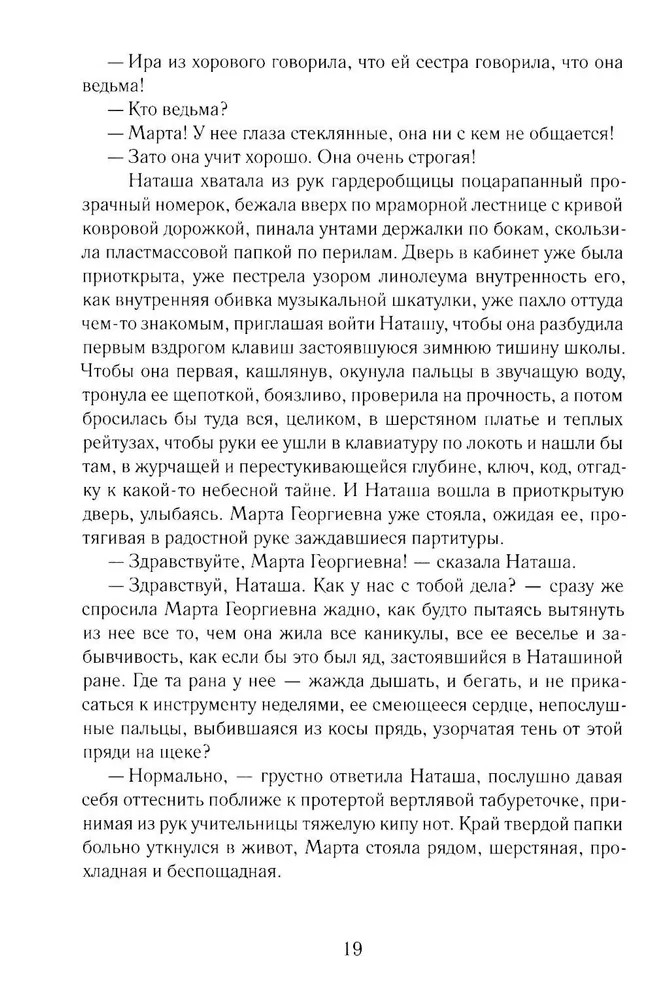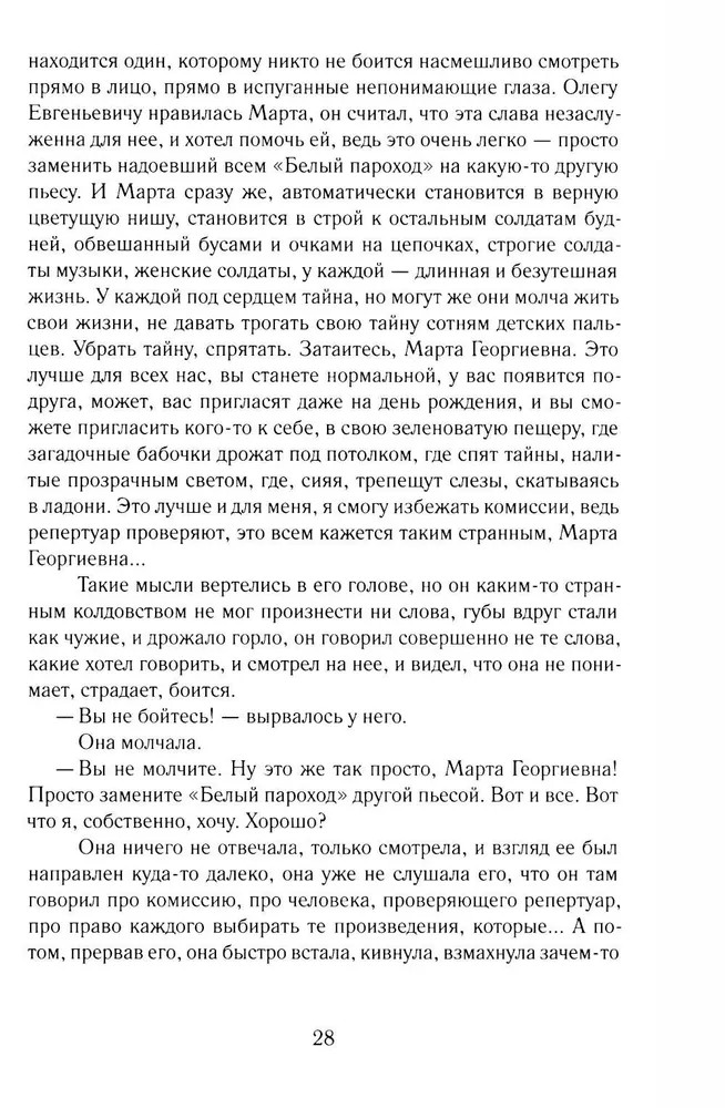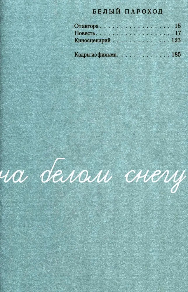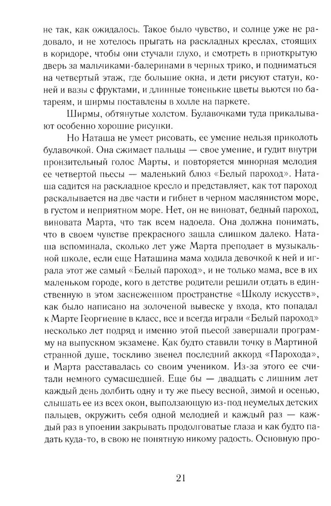 Перестройка шагает по советской стране и отзывается переменами в якутской музыкальной школе. Из далекой Москвы в учебное заведение прибывает новый директор. Его задача — обновить местные порядки, наступив на горло заезженной песне «Белый пароход», которую ежегодно исполняет детский хор школы. Против чужака и новшеств выступает руководительница коллектива Марта Григорьевна. Столкновение полов и культур, прошлого и настоящего приводит к магическому сближению двух героев. В книгу вошел сценарий мистической драмы Инги Шепелёвой «Белый пароход», а также повесть-первоисточник. |