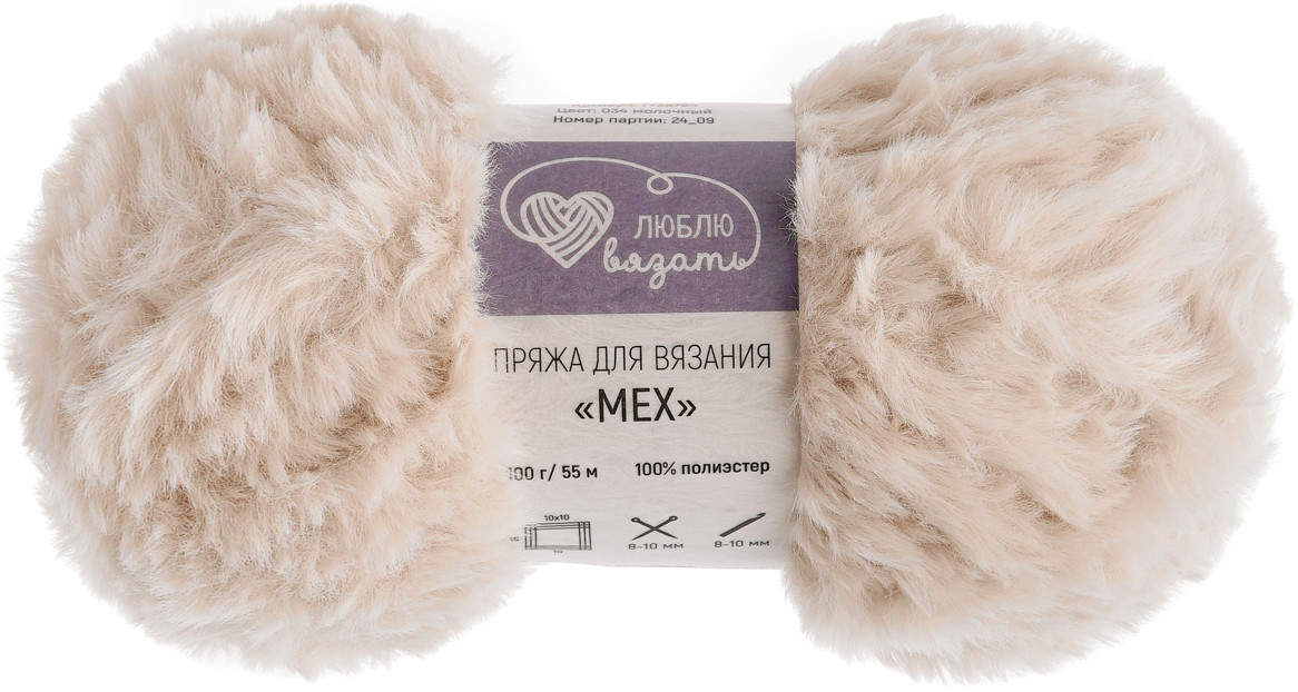 Пряжа для вязания «Мех», цвет 034 молочный | Люблю вязать