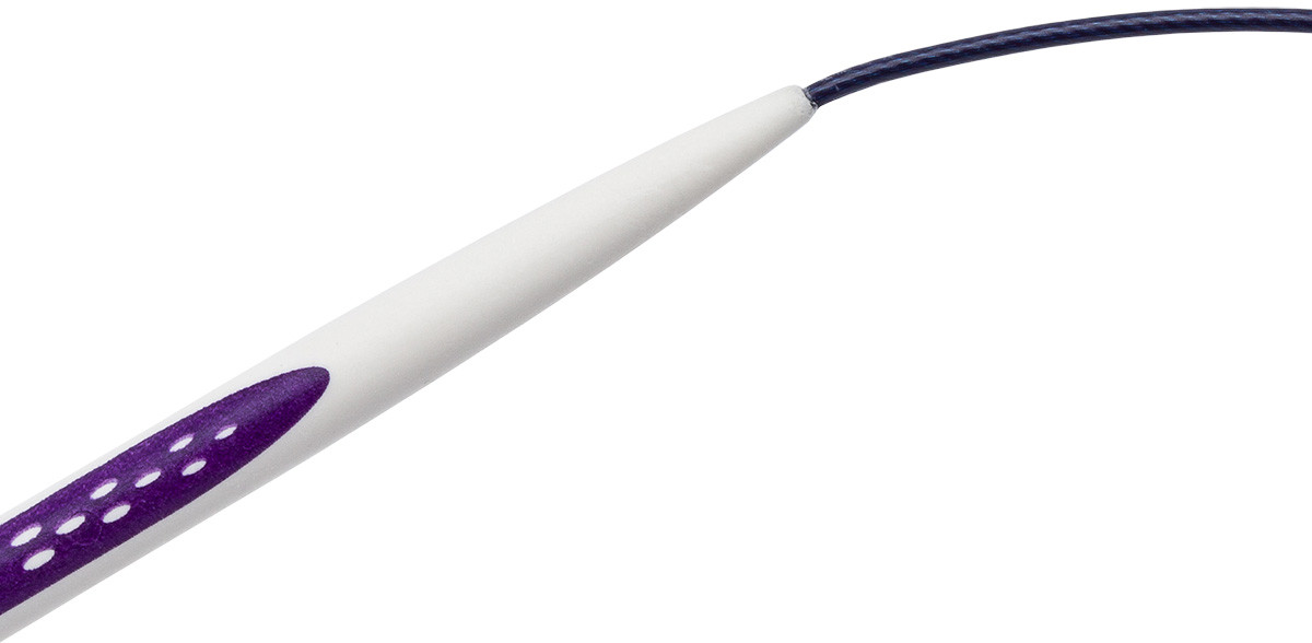 Спицы круговые изготовлены из высококачественного пластика High-Performance и легко гнутся, т.е. при вязании они повторяют движения рук. Благодаря гладкой поверхности они приятны на ощупь и не издают характерного стука. Металлический стальной тросик, покрытый пластиком, исключает перекручивание полотна и обеспечивает ровное и аккуратное вязание. Подходят для пряжи из любых материалов, в том числе хлопка, акрила, шерсти, вискозы.