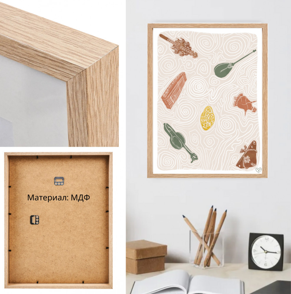 Интерьерный постер в раме «ūlttyq aspaptary» формата 30 × 40 см. Картины для вашего дома в спальню, в гостиную или на кухню. Авторские интерьерные картины от Balamour.art отлично впишутся в любой интерьер и создадут дополнительный уют в вашем доме. Постер изготовлен из мелованной бумаги высокого качества (300 г/ м3) с матовой текстурой. Рама изготовлена из МДФ, выполнена под дерево. Оргстекло. Цвет — под дерево. |