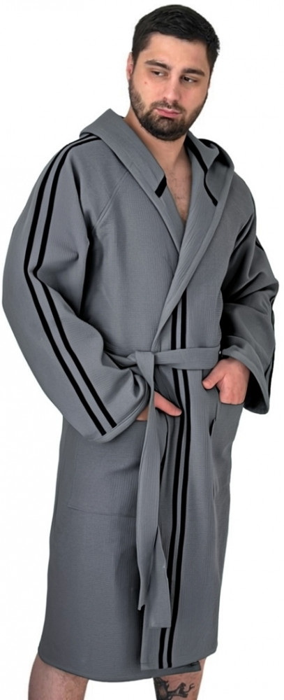 Халат выполнен из вафельного полотна — 100% турецкого хлопка. Красивый дизайн, удобная модель. Собственное производство, отличное качество. Для сауны, бани, для домашних водных процедур. Для простого использования в домашних условиях. Нет ничего комфортнее, чем халат накинутый утром после сна. Позавтракать с чашечкой кофе в любимом халате. В вечернее время просмотр телевизора после рабочего дня, скинув всю ношу рабочей одежды. Незаменимым и оригинальным подарком также послужит халат. Изделия из натурального хлопка дают усадку при стирке. Не линяет. Рекомендовано подбирать халат на размер больше.