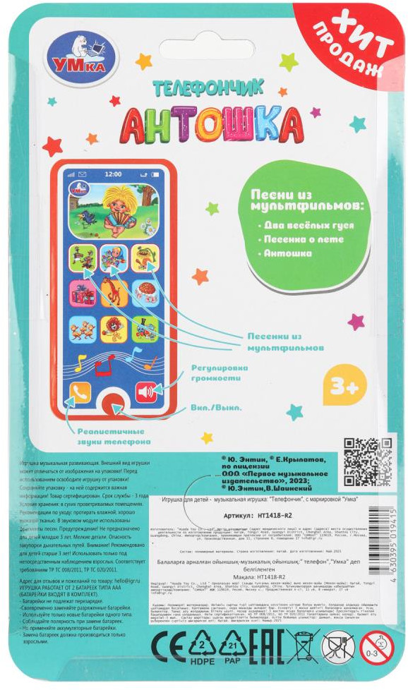 Музыкальная игрушка «Телефончик Антошка» ТМ «УМка» станет отличным подарком для маленьких поклонников мультфильмов студии "Союзмультфильм«: