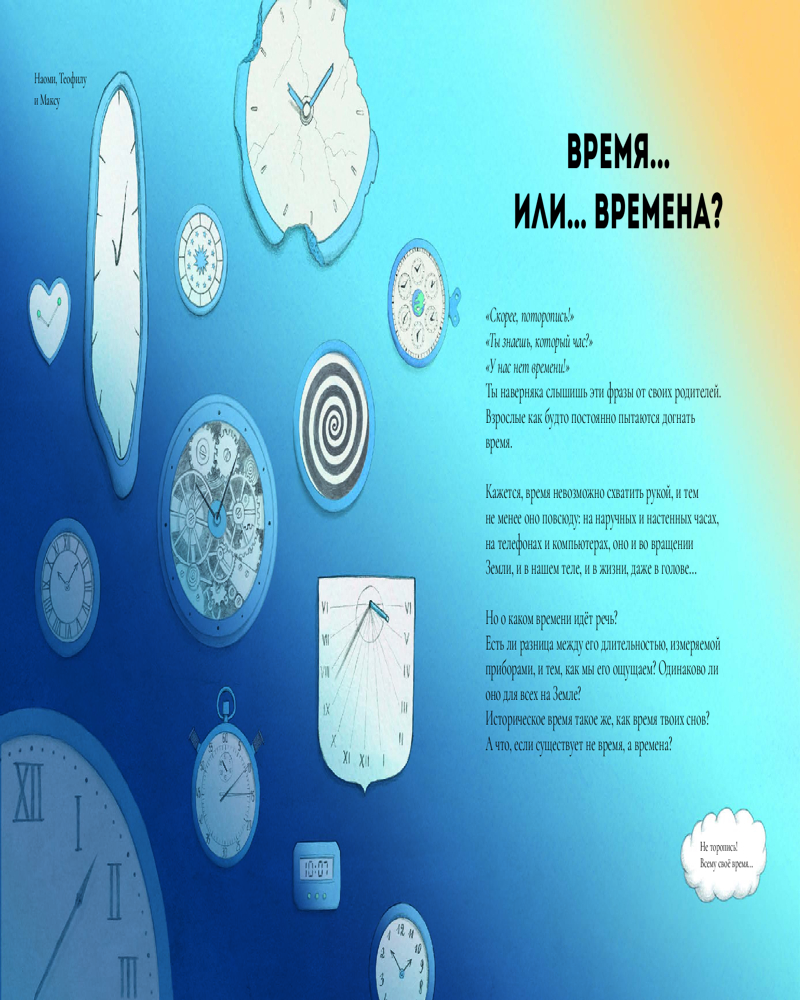 Занимательная книга о многогранности времени. «У нас нет времени!» «Ты смотрел на часы?» «Скорее, поторопись!» Ты наверняка слышал эти фразы от своих родителей. Все бегут, пытаясь угнаться за временем! Но что же такое время? Автор трактует это загадочное понятие с разных сторон: философской, научной, исторической… |