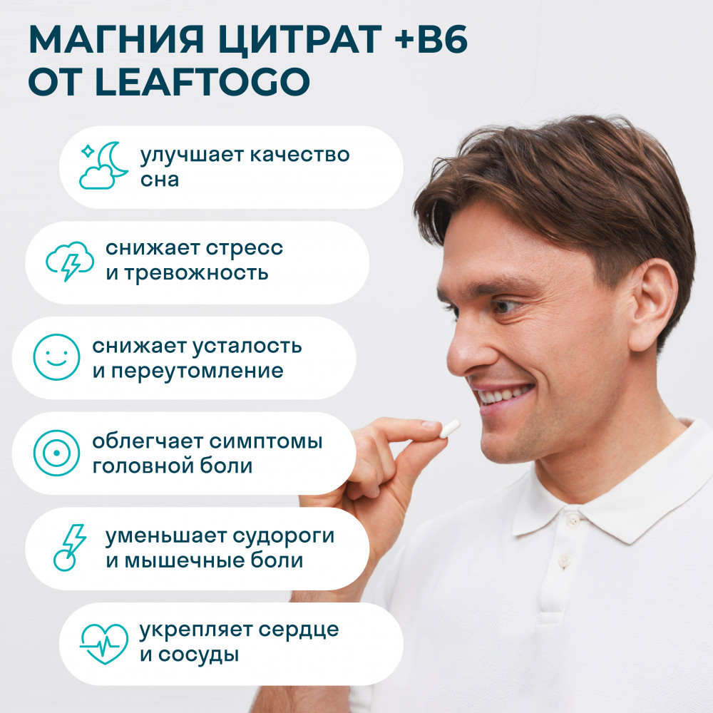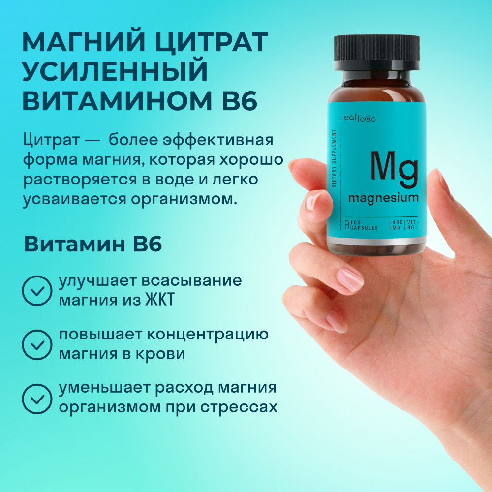 В данный момент этот товар отсутствует в продаже. Возможно, у нас найдется аналогичный или похожий товар здесь. Магний цитрат 400 мг с витамином В6 100 капсул LeafToGo — это тщательно разработанная формула для поддержания жизненного тонуса и эмоционального равновесия. Комплекс витаминов для женщин и мужчин способствует полноценному усвоению и активной работе компонентов в организме, так как содержит Магнезиум цитрат в дозировке 400 мг — одну из наиболее легко усваиваемых форм, усиленную В6.